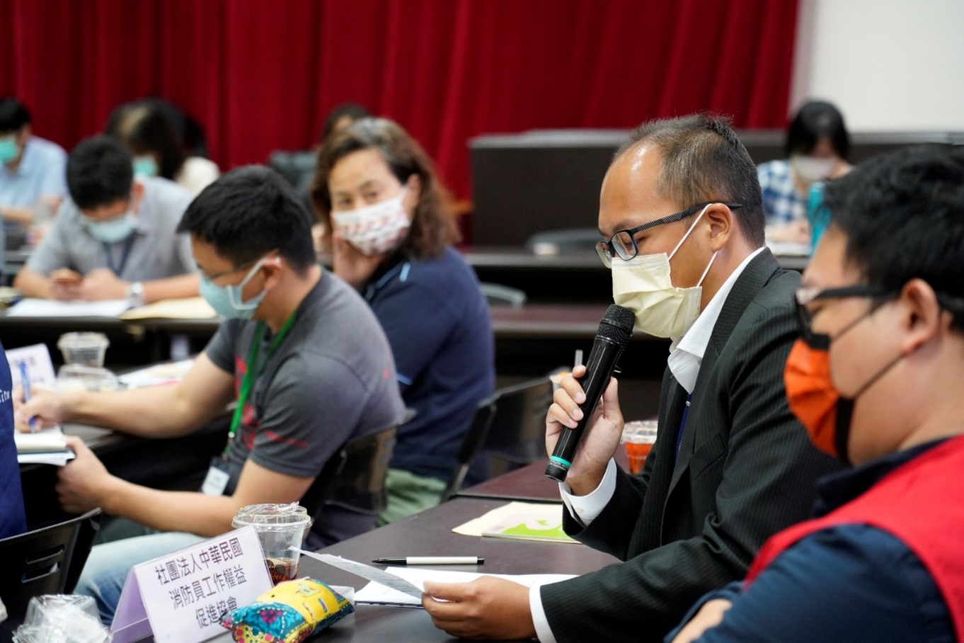 特別是新屋大火中唯一倖存的消防員黃鈺翔理事長,代表中華民國消防員工作權益促進協會發言,他除了強調集體勞動權保障的重要性,更提到應該建立公務員的職業安全保障。