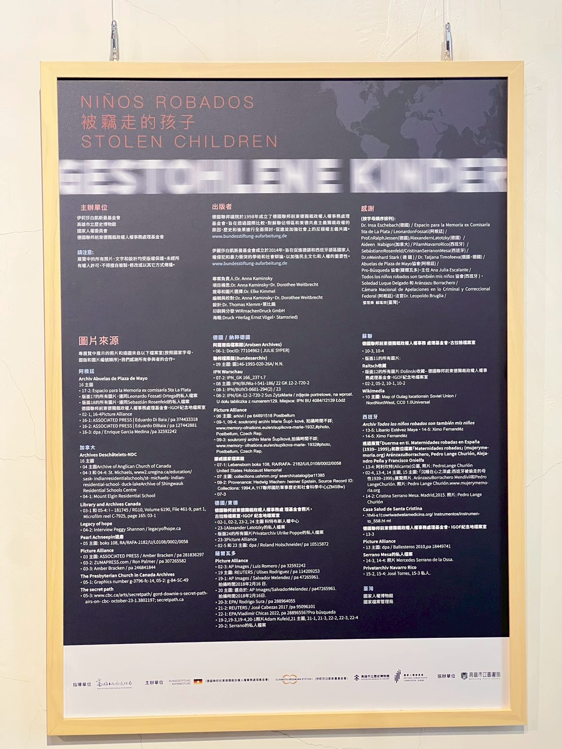 本展由國家人權委員會、高雄市立歷史博物館、德國聯邦前東德獨裁政權人權事務處理基金會及伊莉莎白凱斯曼基金會共同主辦。
